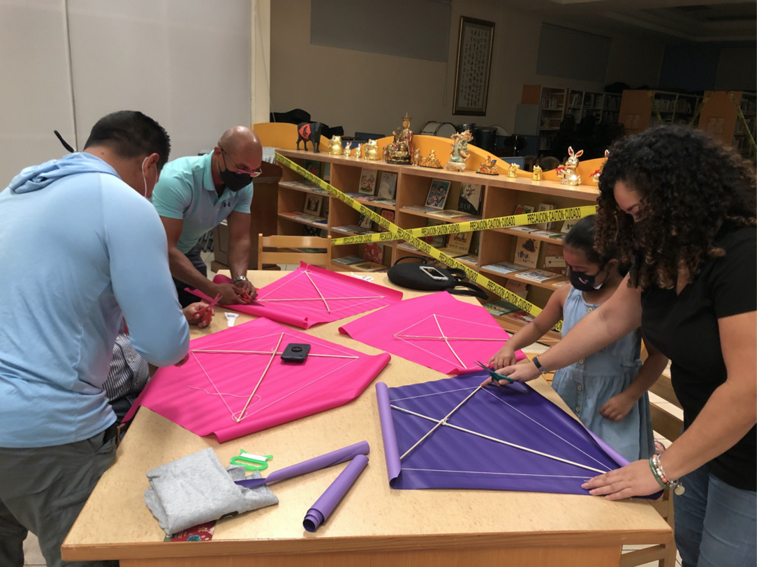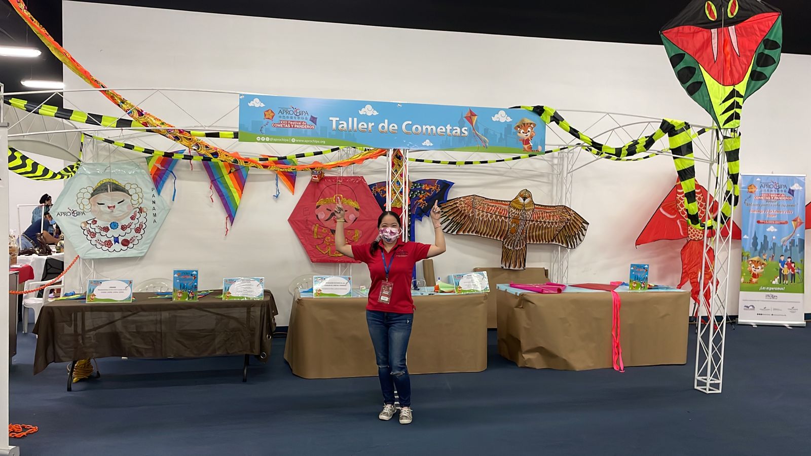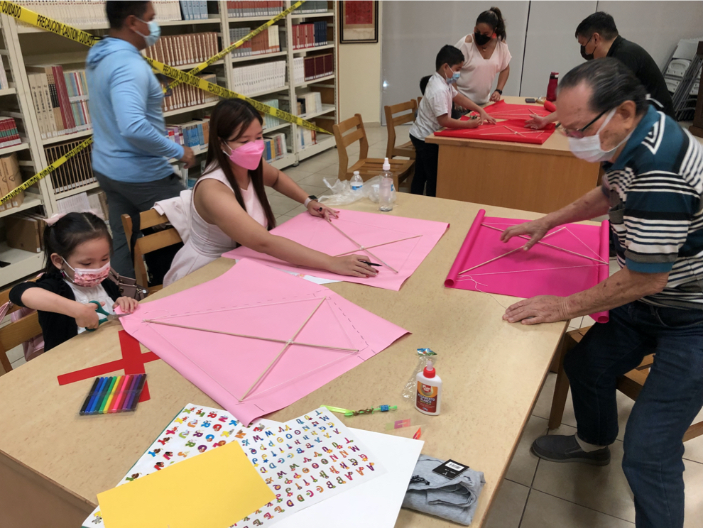 Socios y voluntarios en los talleres de cometas presenciales previos al XXII Festival de Cometas y Panderos ejecutados en Altaplaza Mall y en el Centro Cultural Chino Panameño.