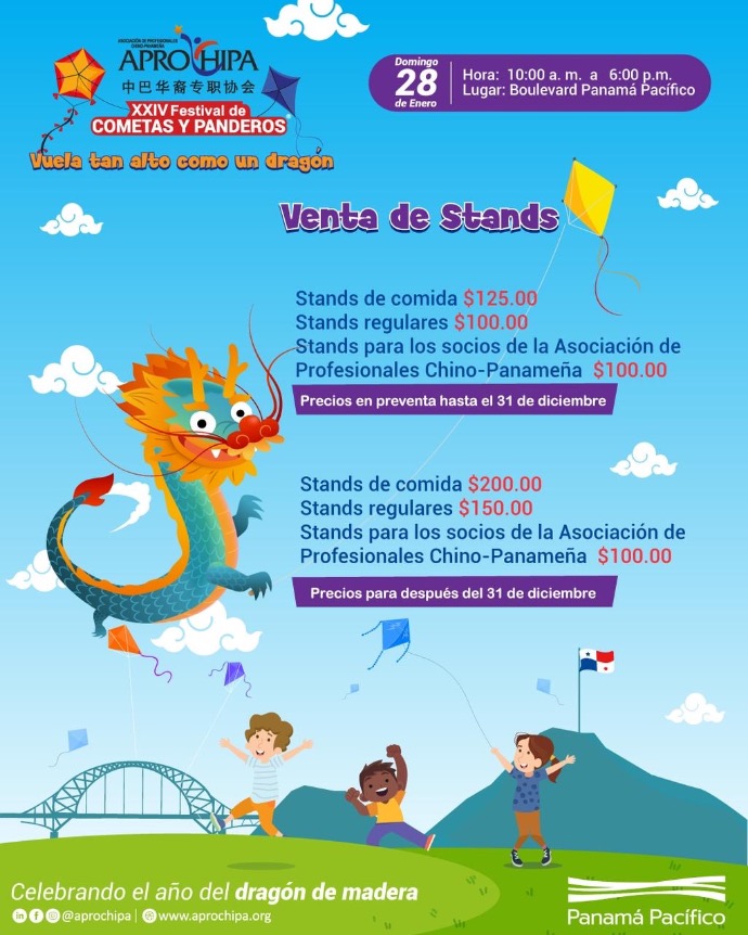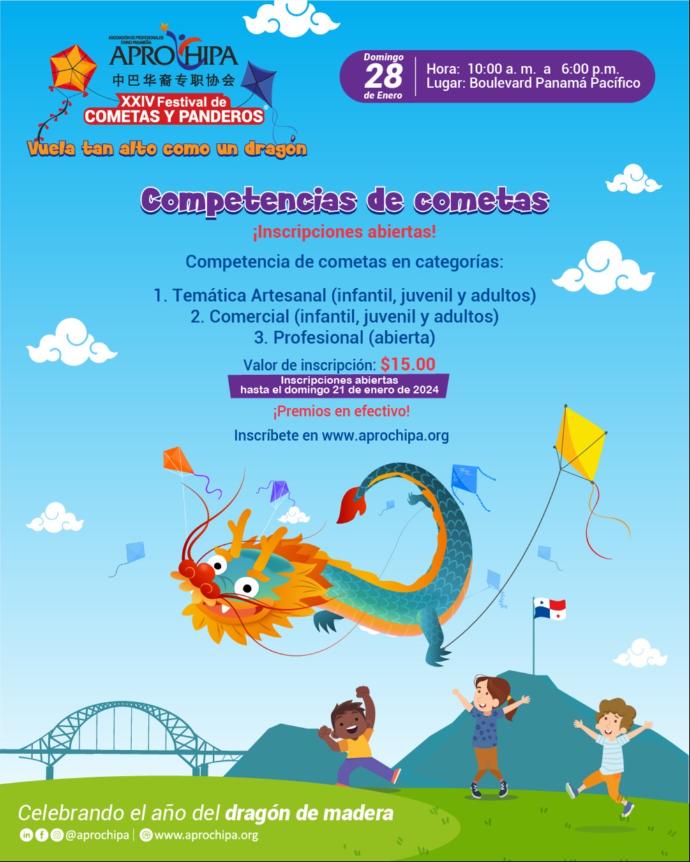Ven a divertirte en familia y con amigos, disfruta de este evento tan esperado en el verano panameño, conoce las historias de nuestra mascota, el dragón Shenlong, y sé parte de un día espectacular en donde el cielo se viste de alegría y muchas cometas.