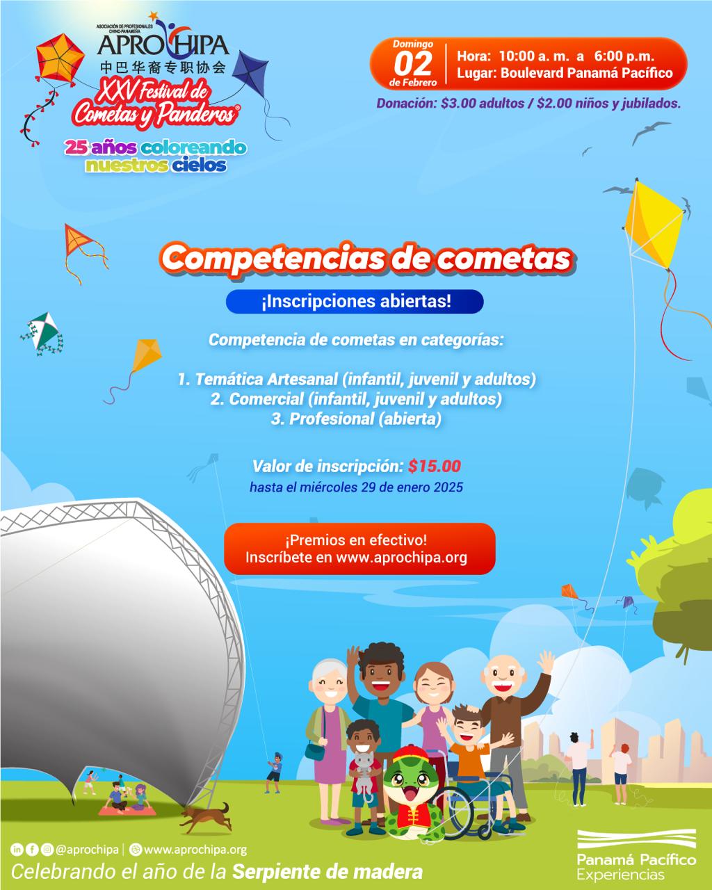 Con ejecuciones ininterrumpidas desde el año 2001, APROCHIPA ha innovado cada año para mantener viva la tradición y el espíritu de esta actividad familiar - confeccionar y volar cometas trayendo a las familias el festival de manera presencial y virtual. Este se realiza como el evento de cierre del año nuevo chino y uno de los eventos más esperados y exitosos del verano panameño.